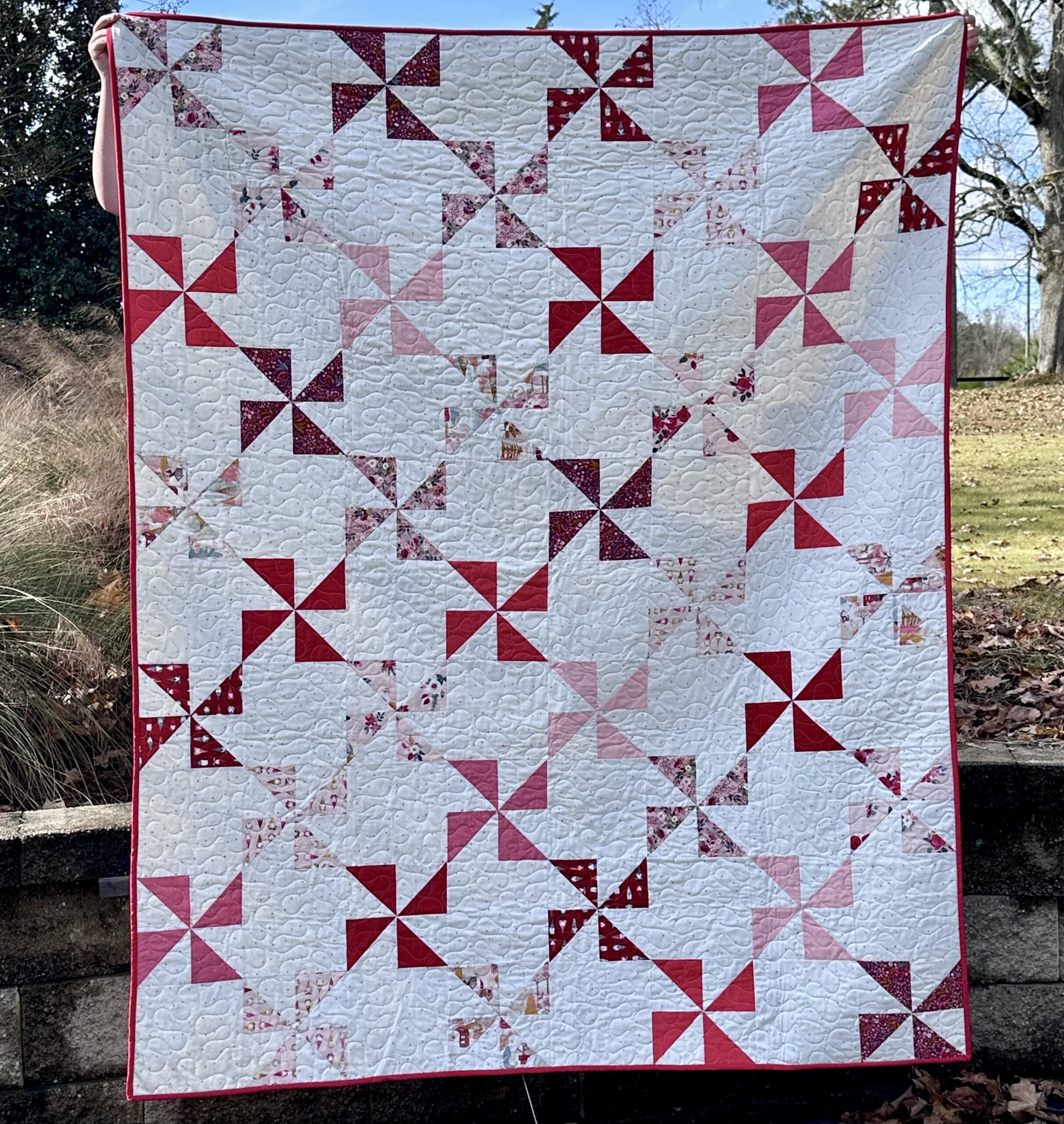 NOTE: This Peppermint Pinwheel Pre-Cut Quilt Kit purchased from Quitl101 features fabric from the Adventale fabric collection by Katarina Roccella for Art Gallery Fabrics. This quilt finishes at 65″x81″