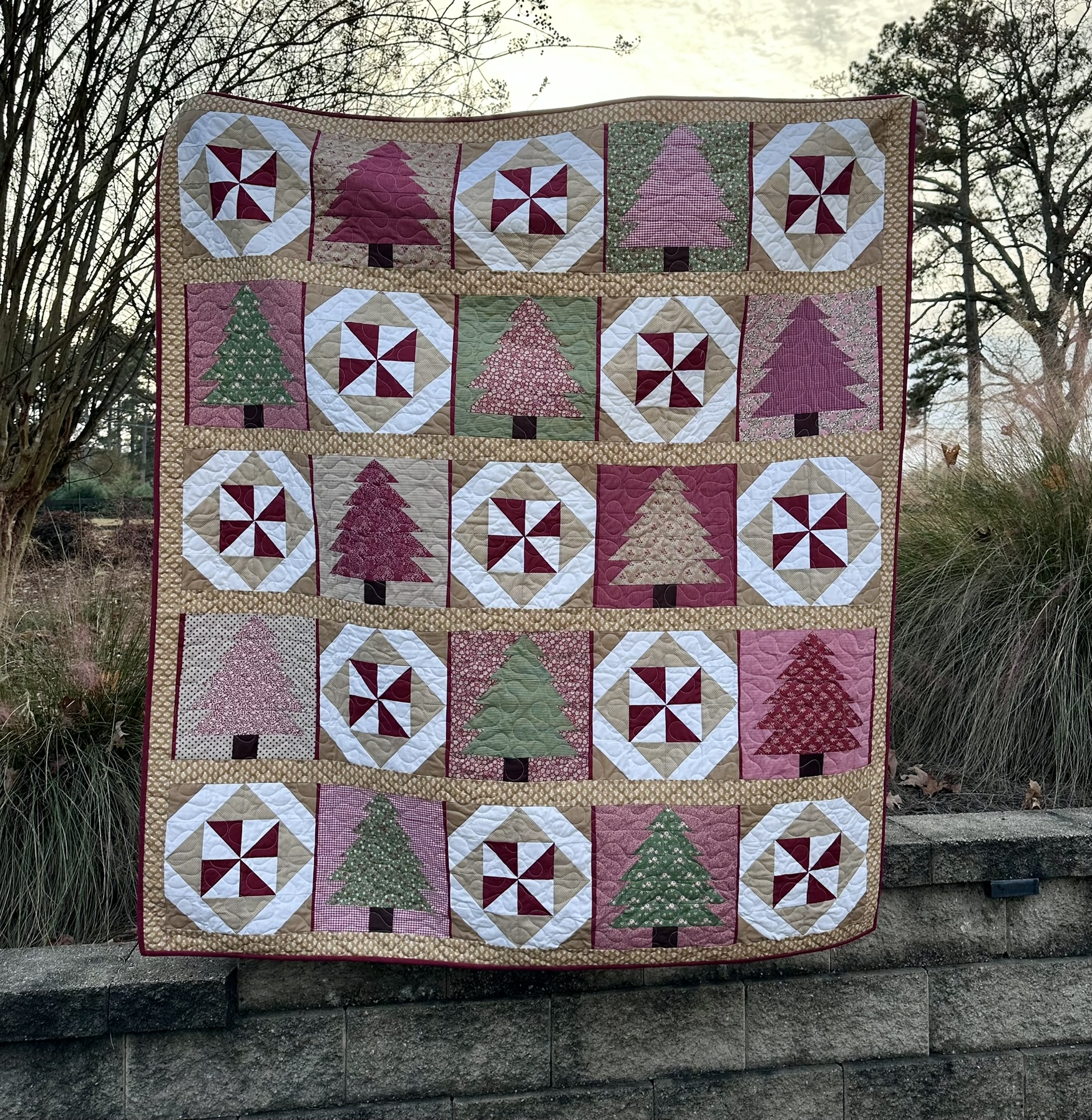 I used my Tilda fabric for this one and it turned out MARVELOUS! This one took me closer to 100 hours to complete but was well worth it. I had left over material and made 8 quilted stockings to match it. Usually I am not a fan of being all “matchy matchy” but this worked out quite well and they really compliment one anothers.