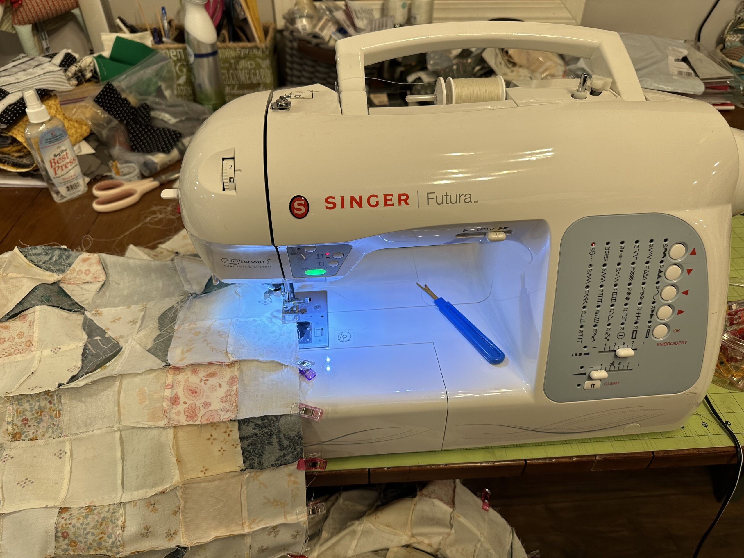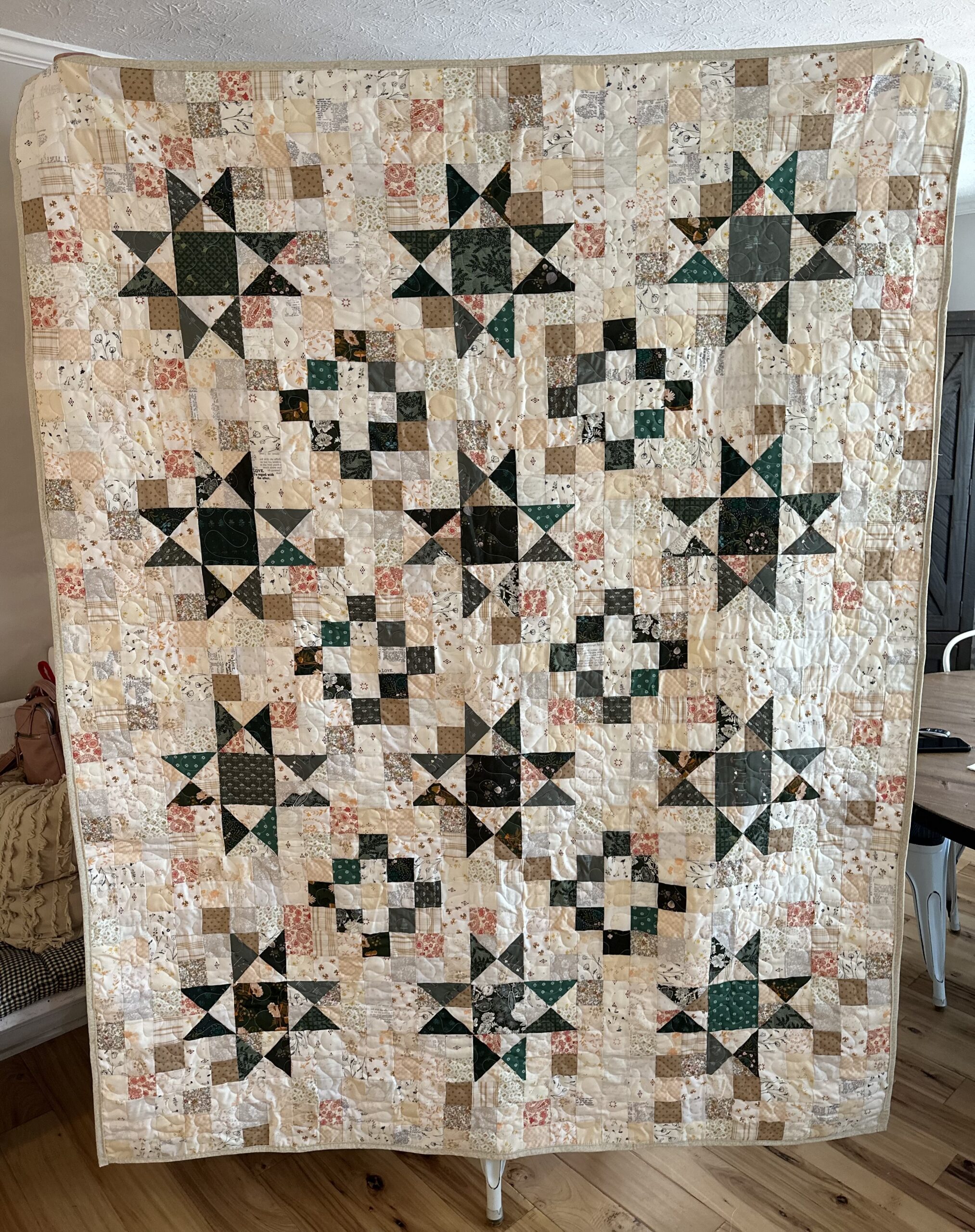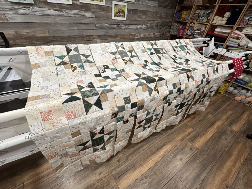 Sometimes you just don’t need a cool back story to accompany your finished art. Sometimes a picture is worth a 1000 words. When I feel like making a quick quilt, I love buying pre-cut kits from Quilt101. This one is just lovely. Happy Quilting, everyone!
